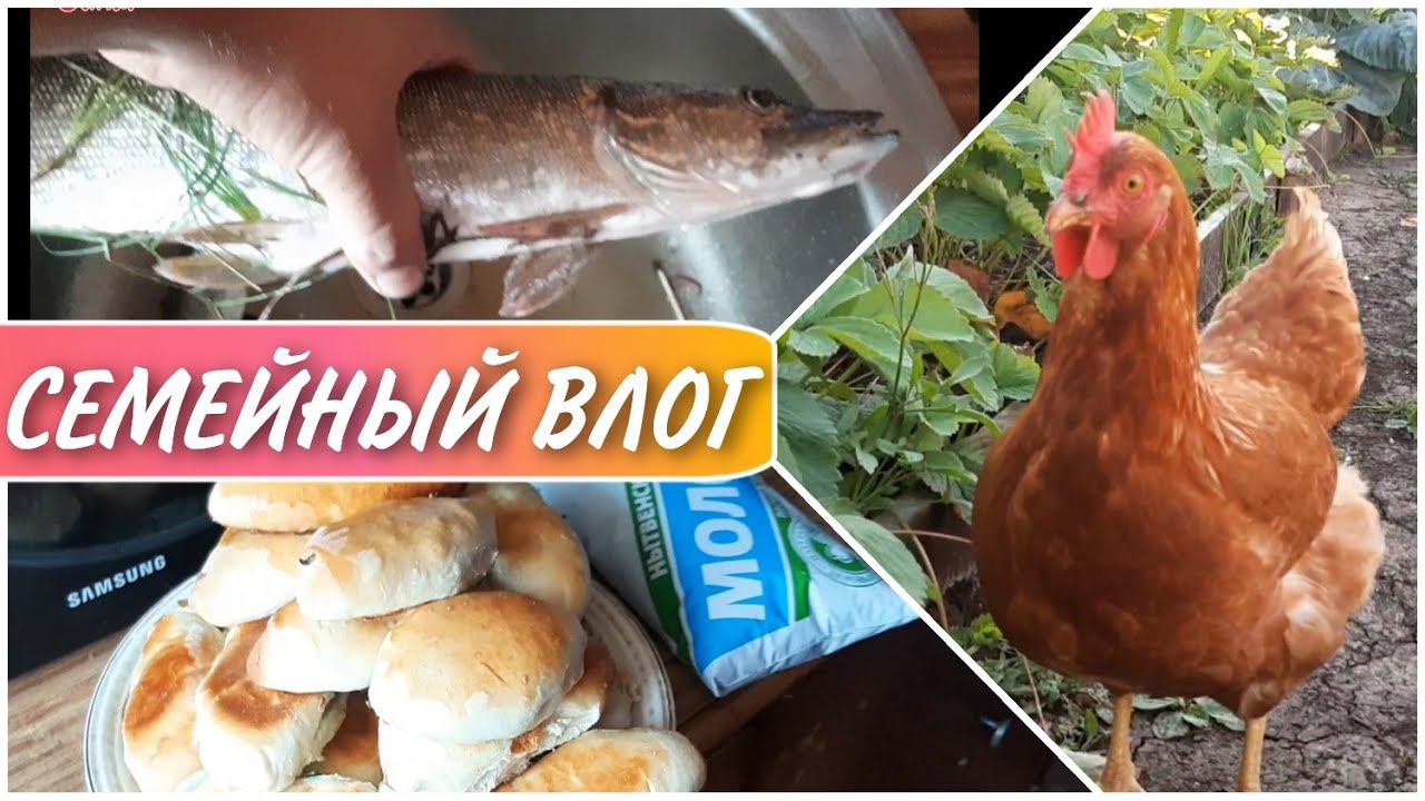 Щука на блесну вертушку/курицы в нашем огороде/постряпали пирог/семейный влог//моя семья/family vlog