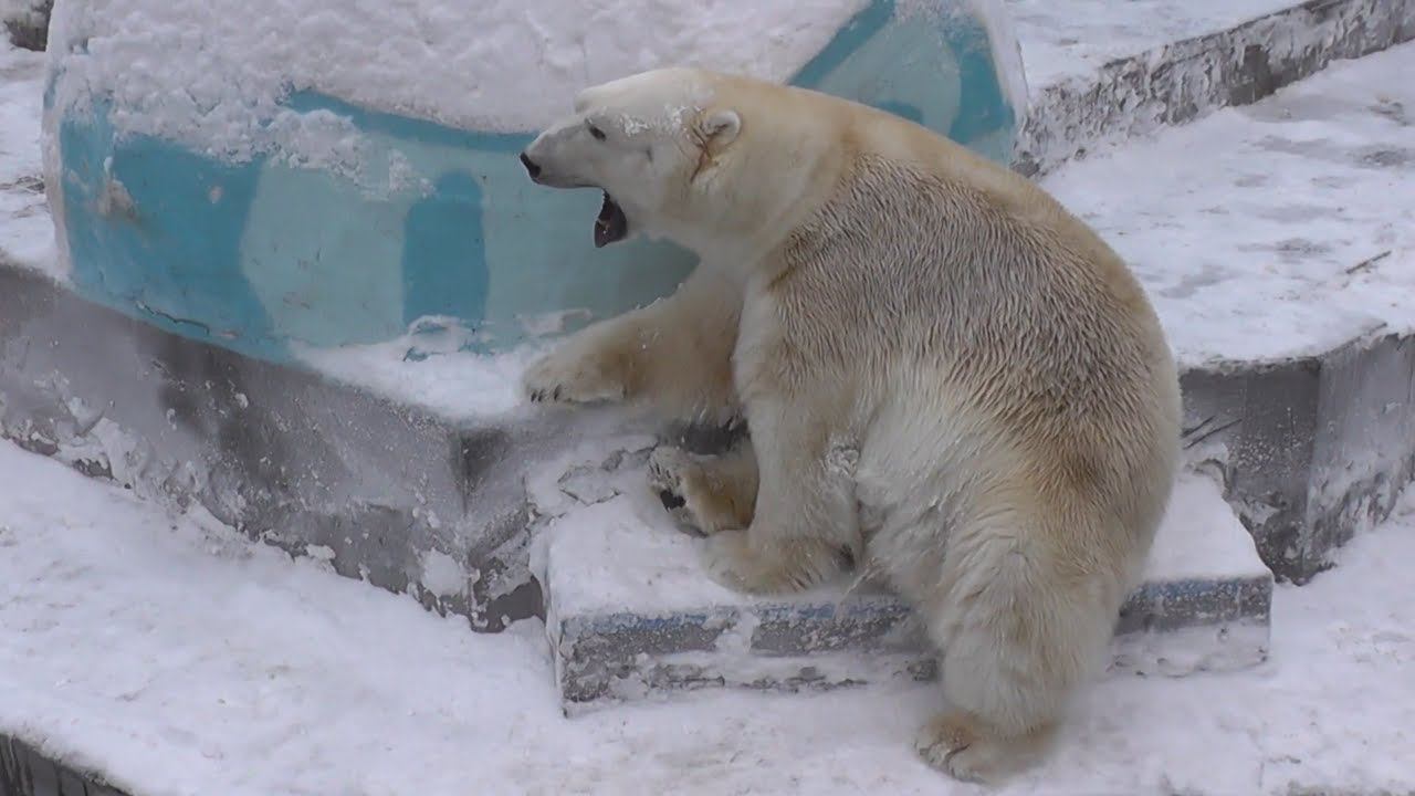 Кай скучает. Белые медведи. Новосибирский зоопарк. Новосибирский зоопарк. Белый медведь Кай.