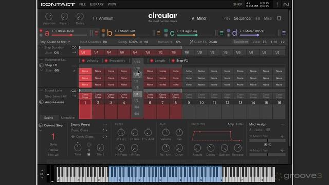 📁 Groove3 Circular Explained 🎬 02. Circular Display Discover how circular display on Play page is used to adjust velocity for each step of each of 4 parts independently and how to adjust duration of each step on Sequencer page. Playlist: https://rutube.ru/plst/900000 #Circular | #Groove3