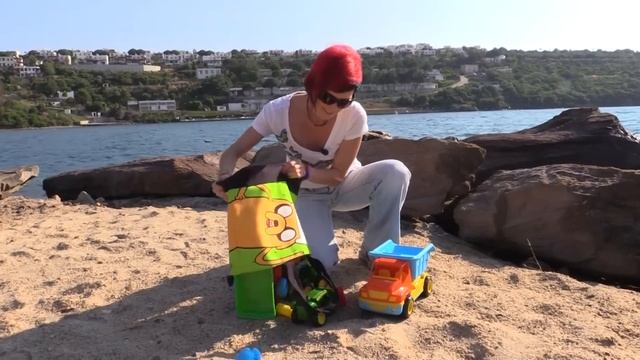 Игрушечный грузовик и сюрпризы. Игрушки и машинки на пляже