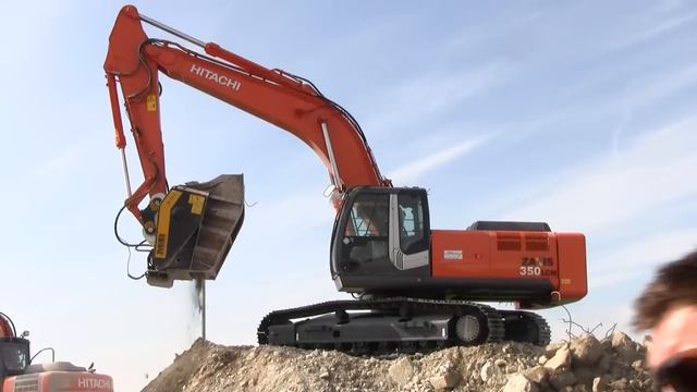 MB demonstrating their BF 120.4 bucket crusher, mounted on a Hitachi Zaxis 350 LCN-3, at the Bauma 2010 expo in Germany
