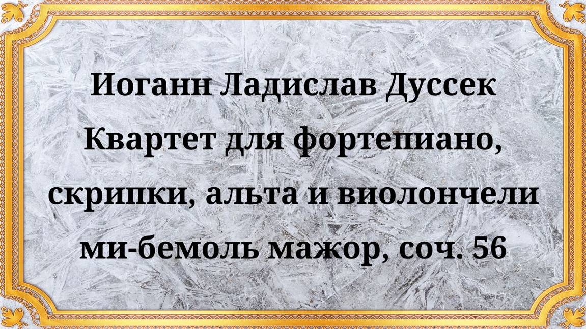 Иоганн Ладислав Дуссек Квартет для фортепиано, скрипки, альта и виолончели ми-бемоль мажор, соч. 56