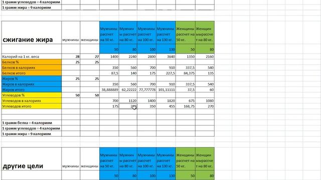 Формулы Калорийности и БЖУ на Массу Сушку и другие цел