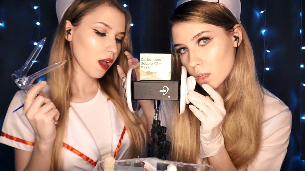 ASMR TWIN NURSE DEEP EAR Cleaning with Bubble Mask ✨ [Sub] АСМР Чистка Ушек