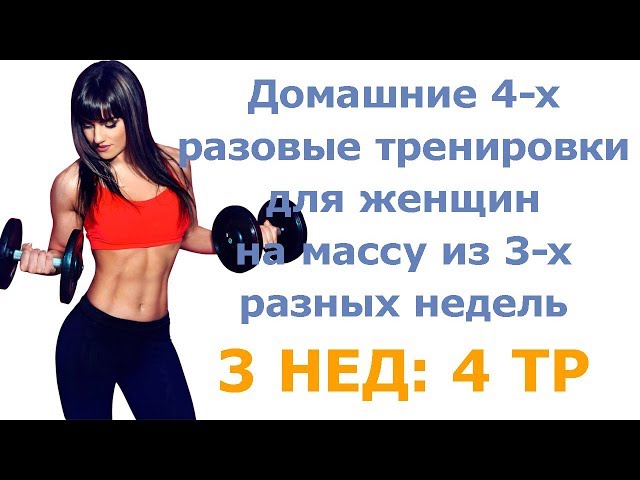 Домашние 4-х разовые тренировки для женщин на массу из 3-х разных недель (3 нед: 4 тр)