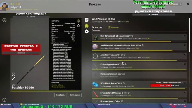 Поддержка донатом https://www.donationalerts.com/r/kalyamba11 Альтернативный донат https://new.donatepay.ru/@1032463 Если стрим лагает,смотри стрим на трово https://trovo.live/s/Kalyamba_na_Ribalke ТОП 1 ДОНАТЕР МЕСЯЦА поддерживающий трансляции получит подарок в виде катушки TAIGA c40 2s Мой ВК - https://vk.com/kalyantv НИК в игре kalyan11 НАШ ДИСКОРД СЕРВЕР https://discord.gg/mSbnTJK8TB Заказ водоема на 1 час - 500р ( весь стрим 2500р ) Модерка на канале 1100р ( каждая следующая на 100р больше) Озвучка доната на 40р,50р,100р,200р,300р,500р,1000р ✅Призы в рулетке "ЗОЛОТАЯ" ✔ ЗОЛОТО ✔ ПРЕМ ✔ КАТУШКИ РАПТОР 40, АЗИМУТ 10000, СИЛЬВЕР 80, ТАЙГА с 30 ЮБИЛЕЙНАЯ, ✔ ПАЛКИ ПИЛКЕРНАЯ, ДОНКА МОРСКИЕ, ✔ РОД ПОД, СТУЛЬЯ ✅Призы в рулетке СТАНДАРТ : ✔ катушка "РАПТОР 40" ✔ катушка "АЗИМУТ 10000" ✔ катушка "ТАЙГА С30, С40, С30 (юбилейная)" ✔ катушки 60 для медного ( ЭВИИ, НАТОРЫ, ГОЛДА, и тд) ✔ ПИЛКЕРНОЕ УДИЛИЩЕ КОРОЛЕВА ОКЕАНА ✔ Морское Донное удилище ✔ прем ( 3, 7, 30 дней) ✔ золото ( 1, 3, 5, 10, 20 ,50) ✔ билет на море ( 1, 3, 5 дней) ✔ голд наживка и др. ✅Призы в рулетке "СТАРТОВАЯ" ✔ катушка "silver80" ✔ катушка "БЕЛЫЙ КАЛИБР" ✔ катушка "Черный калибр" ✔ катушка "Протон" ✔ катушка "Нарга 6000" ✔ Набор Фидерист и спинингист ✔ Карповик Фортуна ✔ фидерные удилища ✔ прем, золото, алкашка, наживки и тд P.s Рулетка это не казино, а награда за поддержку стримера. Вечный ТОП ПОДДЕРЖКИ (11.05.2024) 1. Dimon_pokemonchik 119 784 2. Interceptor 75 508 3. Skreb79 71 261 4. une personne 68 619 5. Нарвал77 31 550