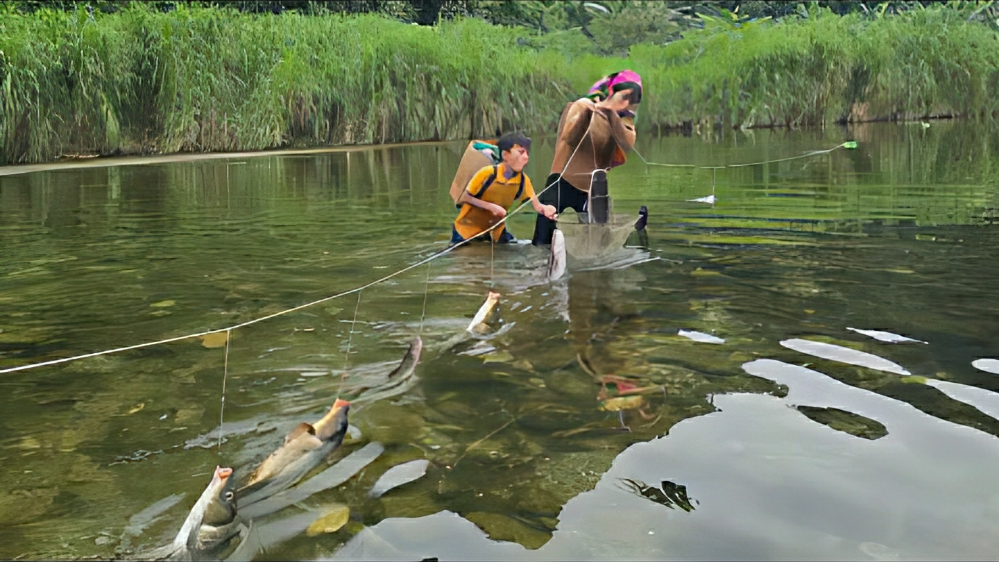 Брат с сестрой ловят рыбу ловушками на червя. Продажа на рынке и готовка еды. Жизнь во Вьетнаме