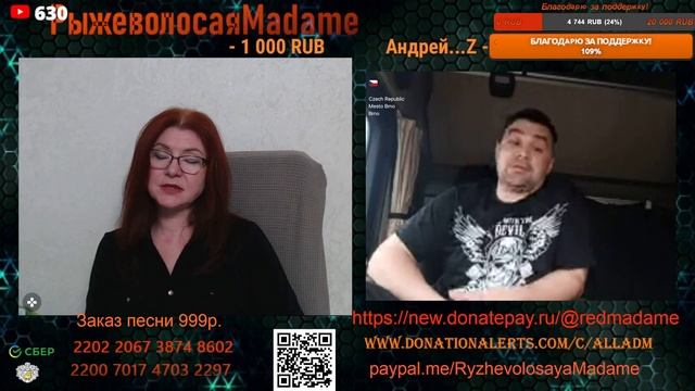 Стримы проводим на новом канале по ссылке https://www.youtube.com/channel/UCpd7cP8a8TbXkhRfZB9-V1g также стримы можно смотреть на следующих платформах https://vkplay.live/rmadame https://vk.com/video/ @RMadame https://boosty.to/ryzhevolosaya-madame Свежие нарезки можно смотреть https://dzen.ru/redheadmadamchat?share_to=link https://www.youtube.com/@RMadam1 https://www.youtube.com/@RMadame Пообщаться в голосовом чате, обсудить новости и узнать первым о предстоящем стриме можно подписавшись на телеграмм канал https://t.me/redheadMadamchat Все беседы ведутся с развлекательной целью и не направлены на разжигание какой либо вражды. Поддержать меня карта Сбер 2202 2067 3874 8602, Тинькофф 2200 7009 0724 4924 или голосовым донатом по ссылке https://www.donationalerts.com/r/alladm