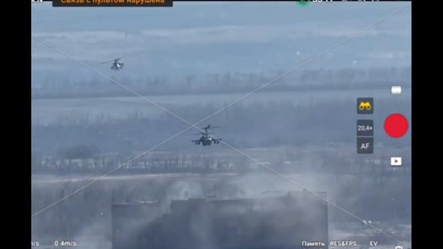 Боевые вертолеты ВКС России в объективе украинского дрона.