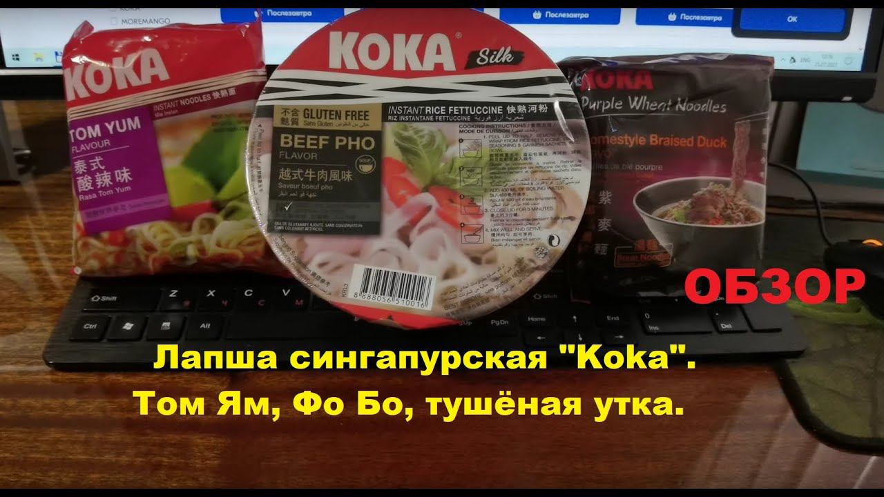 ЛАПША сингапурская от производителя "KOKA". Три вкуса - ТОМ ЯМ, ФО БО, Тушёная УТКА. ОБЗОР.