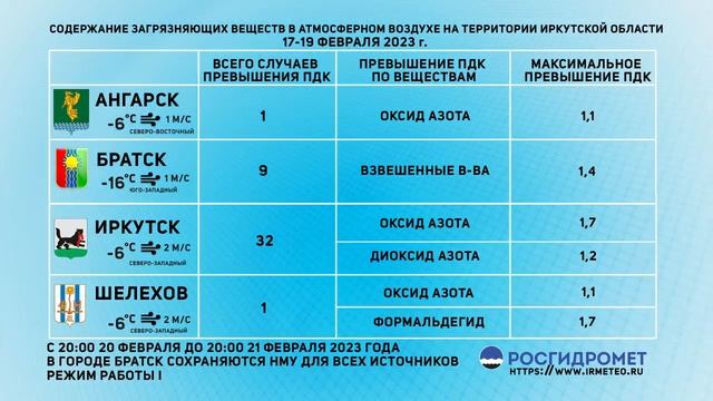 [20.02.2023] Мониторинг состояния атмосферного воздуха 17-19.02.2023