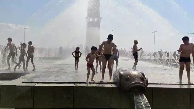 очень было жарко и дети решили искупаться у фонтана