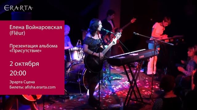 2 октября 2016 г. Елена Войнаровская со своим ансамблем (в основном состоящим из музыкантов Flёur), представит на Эрарта Сцене свой сольный альбом «Присутствие». Подробности и билеты онлайн http://www.erarta.com/ru/calendar/events/detail/b72feb5a-6f4b-11e6-af98-8920284aa333/