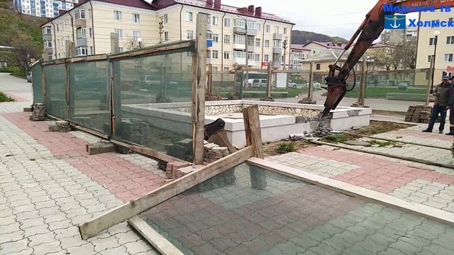 Начался демонтаж фонтана на площади Мира города Холмск