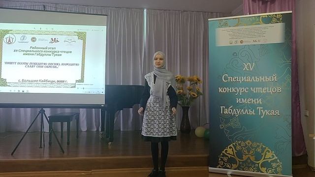 Балалар сәнгать мәктәбендә «Шагыйрьләр җиңү җырын язып, халык данын казанды...» дигән Габдулла Тукай исемендәге шигырь укучылар бәйгесенең район этабы узды. Хәрби батырлыкка, Ватанны саклаучылар елына һәм Бөек Ватан сугышында Җиңүнең 80 еллыгына багышланган бәйге өч этапта уза. Анда өч яшь төркеменә бүленеп, 1-11 класслар укучылары катнаша. Мәктәпләрдә сайлап алу 1-26 сентябрьдә, район туры 2-31 октябрьдә үтә. Район этабында җиңүчеләр 10-12 ноябрьдә Казанның «Волга» лагеренда форумга җыелачак. Киләсе елның 20-23 апрелендә М.Сәлимжанов исемендәге актерлар йортында бәйгенең республика этабы уздырыла. Җиңүчеләрне бүләкләү тантанасы һәм Г.Камал исемендәге Татар дәүләт академия театрында Гала-концерт 23 апрельгә билгеләнгән. Кайбычта узган бәйгедә 31 укучы катнашты. Аларны һәм укытучыларын башкарма комитет җитәкчесенең социаль мәсьәләләр буенча урынбасары Фәния Петухова һәм Казан шәһәрендәге балалар китапханәсенең Туган якны өйрәнү һәм милли әдәбият бүлеге китапханәчесе Ильвина Ситдыйкова сәламләде. Жюри да үз эшен алар җитәкчелегендә алып барды. Бәйгедә катнашу өчен, укучылар күбрәк Бөек Ватан сугышы чорында иҗат иткән патриот шагыйрьләрнең шигырьләрен сайлаган. Нәтиҗәдә, 1-4 сыныфлар арасында Бәрлебашы мәктәбе укучысы Нияз Әскәров, 5-8 сыйныфлардан Борындык мәктәбеннән Кәбир Хөснетдинов, 9-11 сыйныф укучылары арасында Федоровское мәктәбе укучысы Алинә Айдамирова җиңү яулады. Аларга бәйгенең республика этабында да уңышлы чыгыш ясауларын теләделәр.