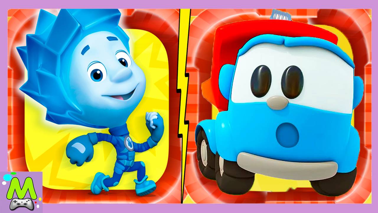 Фиксики vs Лева Грузовичок.Игры Бегалки с Героями Мультфильмов.Гонки Наперегонки