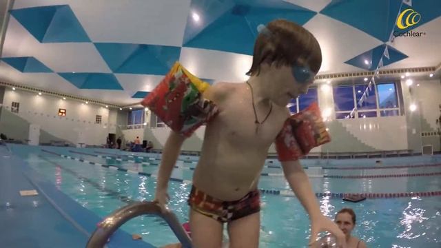 Артём — носитель кохлеарных имплантов. Он очень любит воду и теперь плавает, не снимая речевого процессора с аквааксессуаром Aqua+. Aqua+ включает в себя: водонепроницаемую катушку; кабель; магнит; многоразовый герметичный силиконовый чехол для процессора; страховочный шнурок.