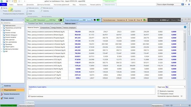 Материальный баланс Aspen HYSYS