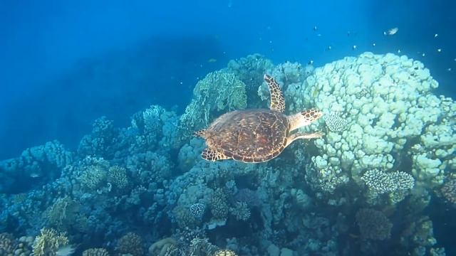 Черепаха живет на домашнем рифе отеля Citadel Azur, Hurgada, Sahl Hasheesh. Июль 2014 г.