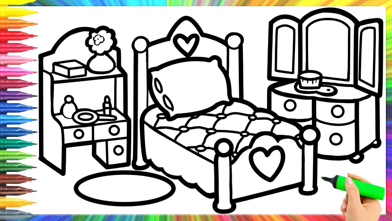 How to draw a bedroom for a girl for children/Bolalar uchun qizlar uchun yotoq xonasini chizish