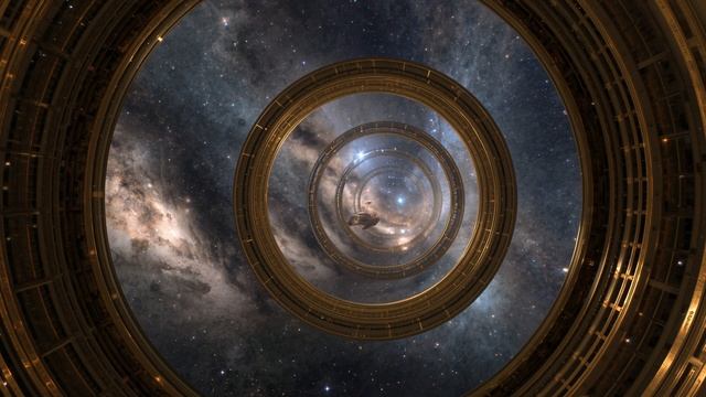 Tunnel of Stretched Time🪐2-Hour Sci-Fi Ambience | Golden Rings & Warped Galaxies|Cinematic Grandeur