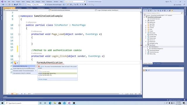 Part One: Add Session Cookie SameSite None and Secure Part Two: Add Authentication Cookie SameSite None and Secure Part Three: Add a custom server side cookie SameSite None and Secure Part Four: Add a JavaScript cookie Samesite None and Secure This tutorial is for an ASP.NET Website Samesite Strict - ment for requests for the same website Samesite Lax - meant for get requests to other websites Samesite None - meant for allowing get or post to other websites when secure is added Note: Session cookies allows a user to connect to a server and continue a session even after a connection is lost #SamiteCookie