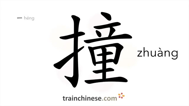 撞 (zhuàng) to collide, run into; hit, bump against; strike