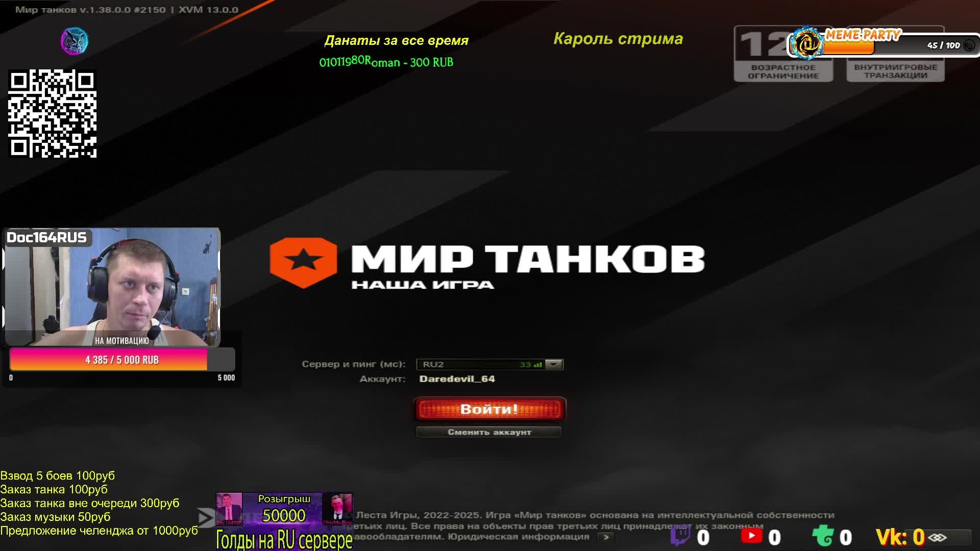 💲➡️Поддержка, заказ музыки: https://donationalerts.com/r/Doc164Rus 😎Отправить МЕМ на экран трансляции: https://memealerts.com/Doc164Rus Поддержать на прямую на карту! Т-Банк - 2200 7005 4752 3299