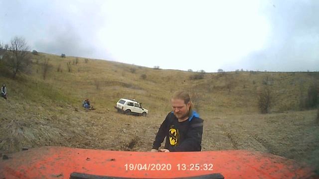 Была предпринята попытка эвакуации двух нивасов. Шниву из болота, а белую ниву поднять в горку т.к. сломан привод и полуось. Шниву вытащил, а белую ниву не удалось.