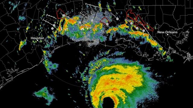Cat 4 hurricane Laura eye on radar and tornado warned outerbands in Louisiana.