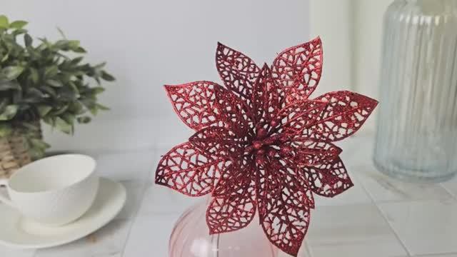 https://www.morozko-shop.ru/ Пуансеттия АЖУРНАЯ красная на стебле, 14х21 см, ABJ403020-2