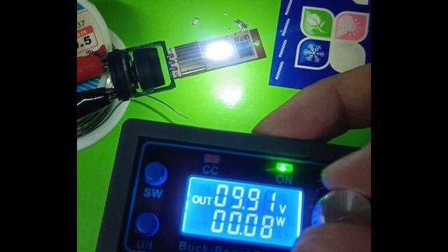 Работа современной компактной диодной автомобильной лампочки при разном напряжении. Стабилизации тока в лампе нет! Ограничение тока реализовано за счёт термодатчика, при включении ток максимальный и быстро падает. В течении нескольких десятков секунд температура достигает примерно 130 градусов на чипе, мощность снижается. Летом в жару светит тусклее, зимой в мороз светит ярче.