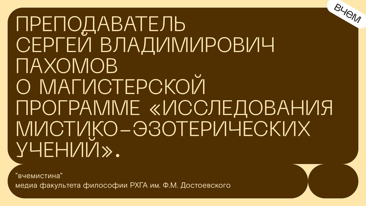 О магистерской программе "Исследование мистико-эзотерических учений" — ее руководитель Сергей Владимирович Пахомов Подробнее о программе: https://academia.rhga.ru/magistracy/issledovanie-mistiko-ezotericheskih-uchenij РХГА в сети: https://vk.com/rhgaru Официальный сайт http://www.rhga.ru