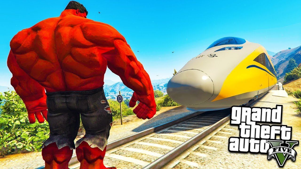 КРАСНЫЙ ХАЛК ПРОТИВ СКОРОСТНОГО ПОЕЗДА ГТА 5 МОДЫ! ОБЗОР МОДА В GTA 5 веселая видео игра как мультик