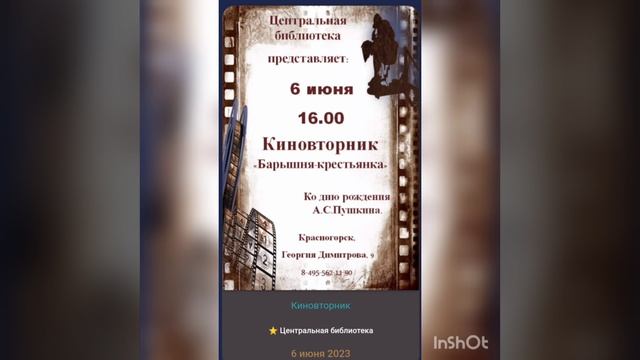 Завтра ВТОРНИК, а это значит, что у всех жителей города Красногорска есть прекрасная возможность абсолютно бесплатно посмотреть кино в Центральной библиотеке города Красногорска. КИНОВТОРНИК. Всем хорошего вечера. #2023 #россия #подмосковье #город #дом #красногорск #кино #киновторник #дети #бесплатно #чтопосмотреть