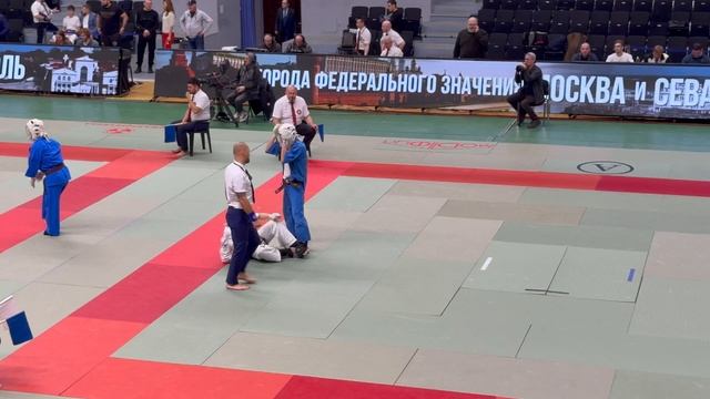 19.10.2025 в Москве прошли VIII Всероссийские соревнования по кудо «К2». Бой в категории до 230 ед. 16-17 лет. В синем Никита Иванников (Респ. Крым, г. Ялта), в белом Георгий Коликов (г. Москва).
