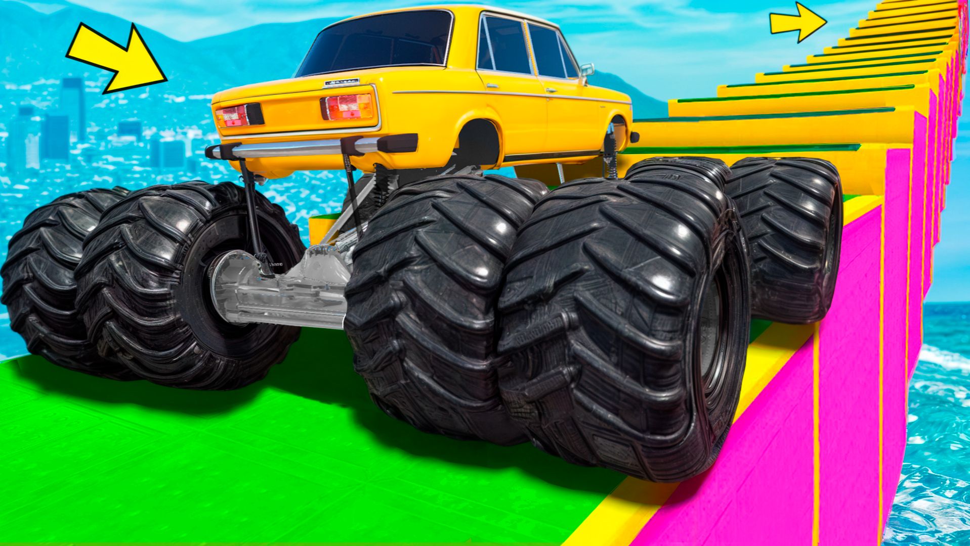 Как далеко сможет чит монстр трак забраться по ступенькам лестницы? Эксперименты ГТА 5