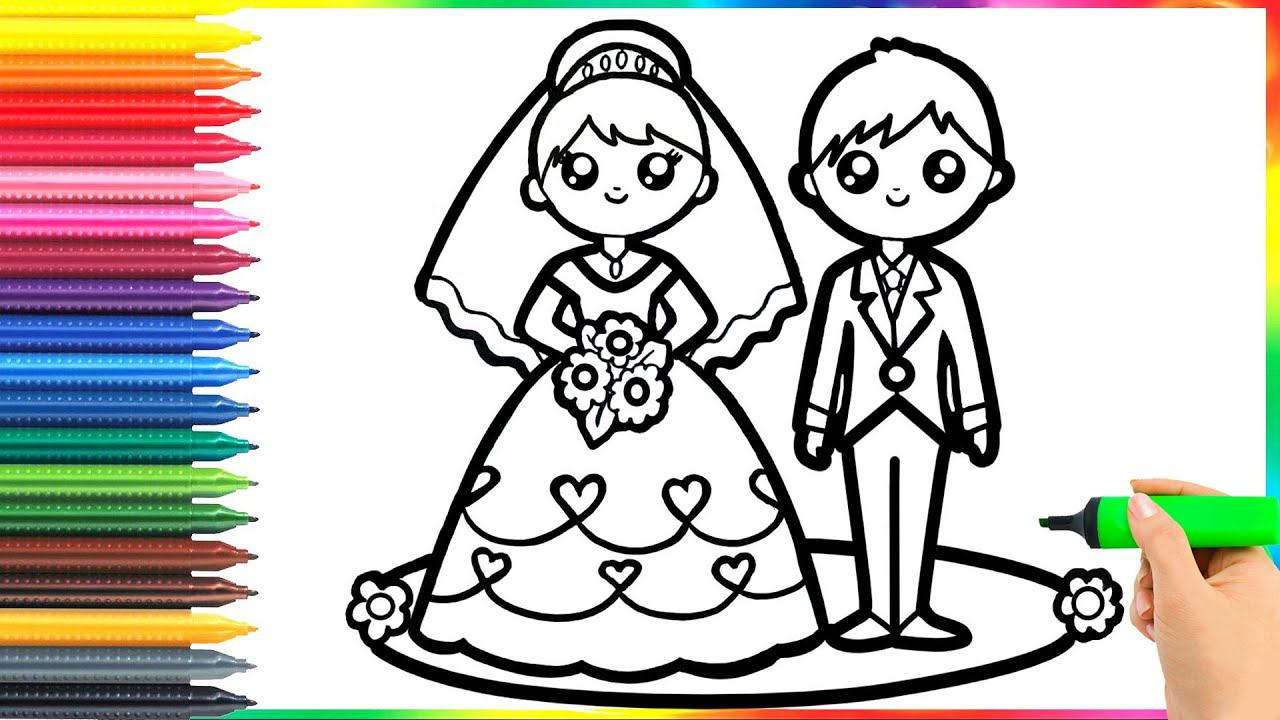How to draw a wedding with a bride and groom for children/Как нарисовать жениха и невесту для детей