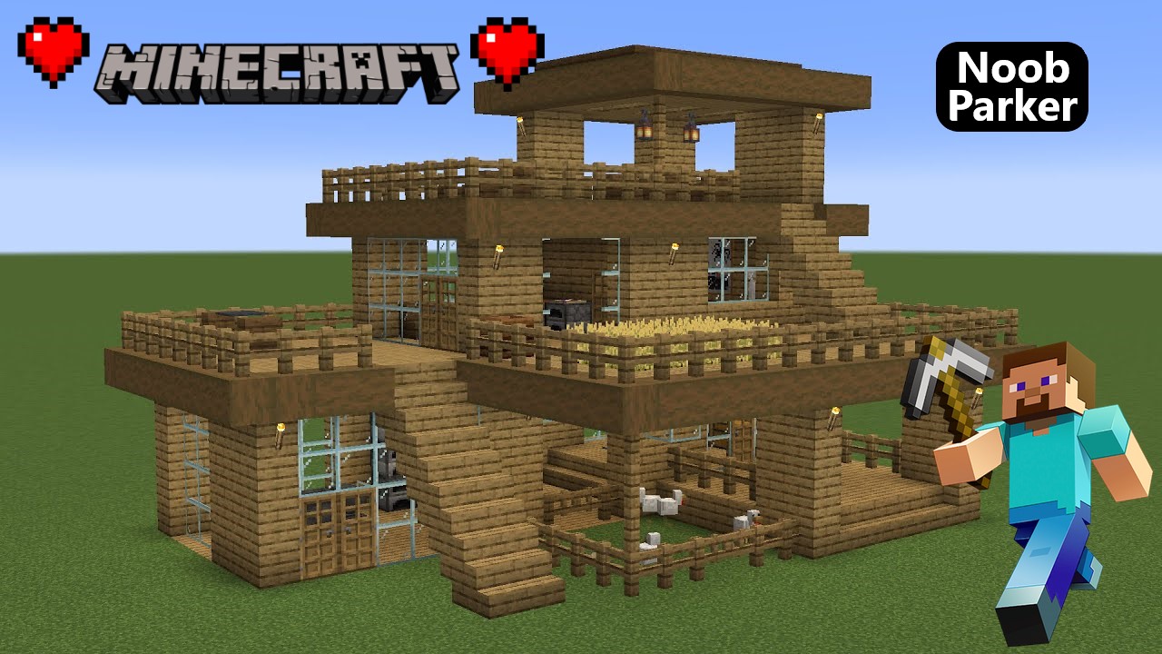Майнкрафт — Как построить большой деревянный дом для выживания, minecraft.