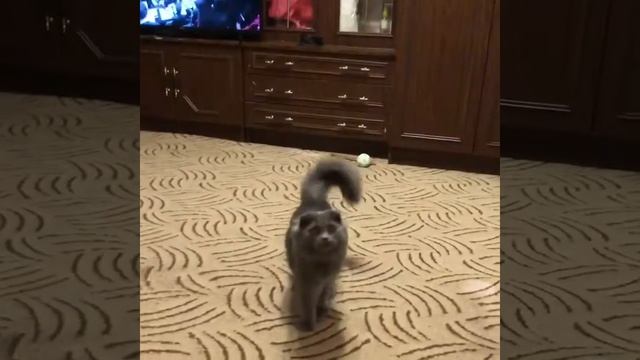 Котик сам приносит мячик чтобы с ним играли