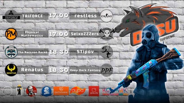 #Чемпионат@dysuesports #dysu #csgo@dysuesports #ярославль #киберспорт Киберспорт Ярославль ⏰[BO1, 17:00, Группа С ] TRIFORCE [ЯГТУ] vs restless [Ур. колл. ЯРГУ] ⏰[BO1, 17:00, Группа D ] Physical Mathematics (PM) [ЯрГУ] vs SelxoZZZers [ЯГСХА] ⏰[BO1, 18:30, Группа C ] The Raccoon Raced [ЯрГУ] vs 5Tipov [ССГЯ*] ⏰[BO1, 18:30, Группа D ] Renatus [ЯрГУ] vs Deep Dark Fantasy [ Ур. колл. ЯРГУ] ] Трансляция группы С: https://www.twitch.tv/dysutv Трансляция группы D: https://www.twitch.tv/dysuesports _______________________________________________________________ Поддержать нас: http://www.donationalerts.ru/r/dysu_esports _______________________________________________________________ Платформы трансляции: Twitch: https://www.twitch.tv/dysuesports GG: https://goodgame.ru/channel/DYSU-eSports/ YouTube: https://gaming.youtube.com/channel/UCGKns7AGqlpkbsbfO.. VK: https://vk.com/dysuesports