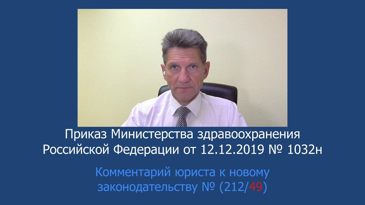 Комментарий медицинского юриста Алексея Панова к изменениям в приложения № 1, 2 и 3 к приказу Министерства здравоохранения и социального развития Российской Федерации от 12 апреля 2011 г. № 302н "Об утверждении перечней вредных и (или) опасных производственных факторов и работ, при выполнении которых проводятся предварительные и периодические медицинские осмотры (обследования), и порядка проведения обязательных предварительных и периодических медицинских осмотров (обследований) работников, занятых на тяжелых работах и на работах с вредными и (или) опасными условиями труда". Приказ 1032н доступен по ссылке http://pravo-med.ru/legislation/fz/15296/