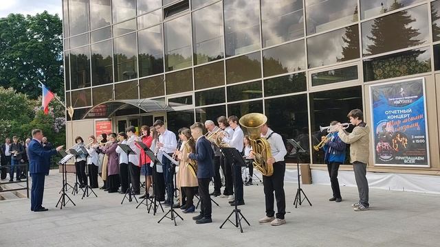 Исполняет духовой оркестр Царскосельской гимназии искусств им. А. Ахматовой 9 июня 2023
