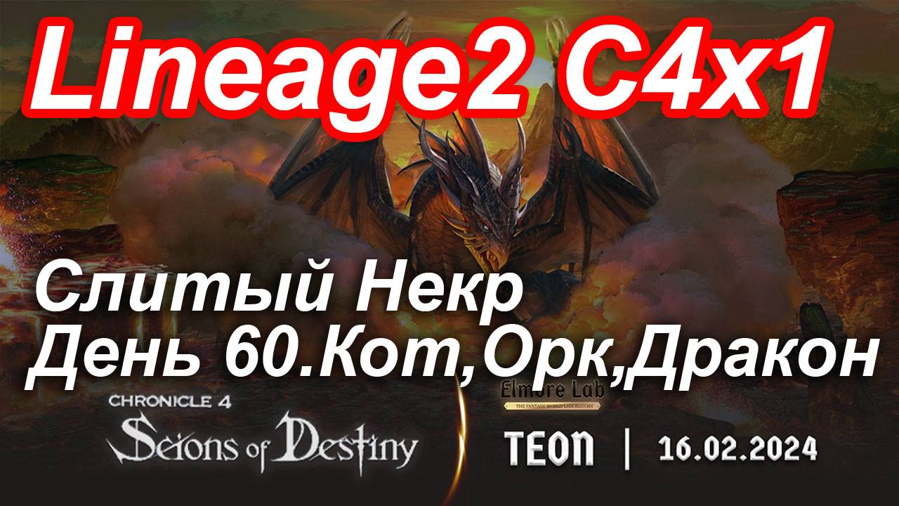 Lineage2. Elmorelab.com. Cronicle4 x1. Cлитый некр. День 60. Кот, Орк, Дракон.