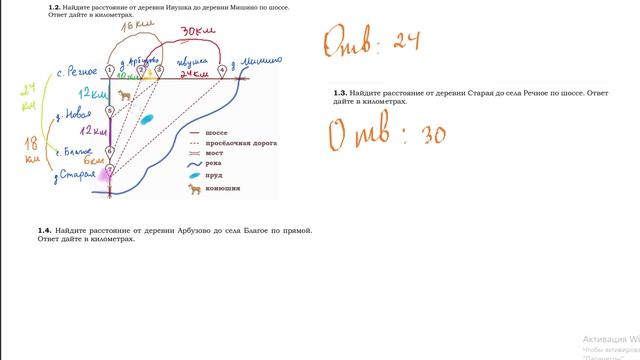 ОГЭ 2026. План местности без клеток. Урок 3. Определить расстояние от одной деревни до другой