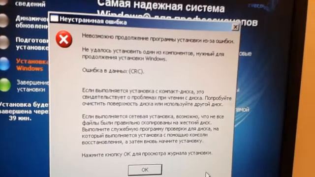Невозможно продолжение программы установки из за ошибки