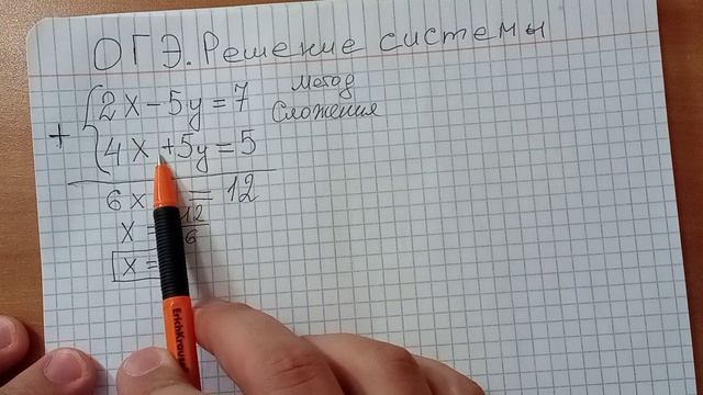 Решение задания из ОГЭ по математике. "Система уравнений" (Методом сложения)