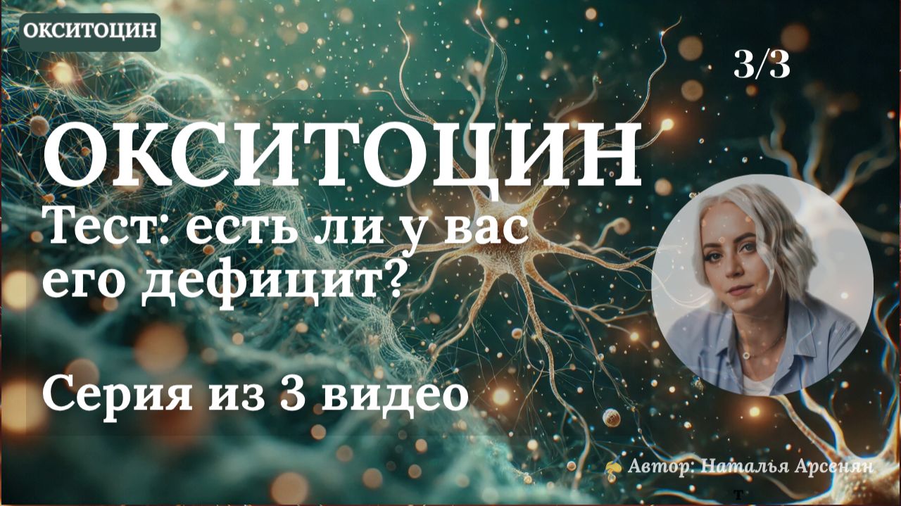 Потеряли тепло, близость и интерес к людям? Это может быть не характер, а уровень окситоцина — «социального гормона», который защищает мозг после 45. Этот короткий тест из 5 вопросов поможет понять, есть ли у вас его дефицит и насколько он выражен. 🎯 Что в видео: 5 вопросов — отвечаете «да» или «нет» Быстрый подсчёт результатов Расшифровка трёх уровней (0–1, 2–3, 4–5 «да») Что делать, если выявился дефицит Почему низкий окситоцин связан с риском деменции Видео — заключительная часть серии про работу окситоцина после 45 лет. 📂 Плейлист «Окситоцин и здоровье мозга» https://rutube.ru/plst/1300589 🔬 Научная основа Исследования показывают, что низкий уровень окситоцина связан c: → снижением эмпатии и эмоциональной теплоты → повышением социальной тревожности → нарушением работы гиппокампа → ускорением возрастных изменений мозга Понимание своего уровня — первый шаг к профилактике когнитивных нарушений. 🎁 Хотите узнать, как повысить окситоцин безопасно и научно? В Клубе «Лаборатория Нейропрактик» вы получите: практики восстановления социальных связей протоколы повышения окситоцина техники против одиночества и эмоциональной изоляции систему профилактики деменции через нейрохимию 🔗 Подробнее: https://nataliaarsenian.tilda.ws/club 📚 Видео этой серии: 1/3 — Одиночество после 45 = риск деменции ×3 2/3 — Окситоцин — почему его называют “секретной молекулой”? 3/3 — Тест вашего уровня окситоцина (вы здесь ✓) ✍️ Автор Наталья Арсенян — нейрокоуч, клинический психолог, автор нейропрактик. Ассоциированный член Союза ПРЕВЕНТМЕД. ⏱ Таймкоды 00:00 — 5 вопросов теста 01:45 — Подсчёт результатов 02:09 — Расшифровка результатов 🌐 Социальные сети Telegram: https://t.me/n_arsenian VK: https://vk.com/club80384400 Instagram: https://www.instagram.com/natalia.arsenian Facebook: https://www.facebook.com/arsenian.ru/ 📞 Контакты Email: info@arsenian.ru Telegram для связи: https://t.me/Natalia_Arsenian 💬 Напишите в комментариях: Сколько «да» у вас получилось? И какой пункт оказался самым точным? 🏷 Хештеги #тест #окситоцин #здоровьемозга #после45 #деменция #когнитивноездоровье #самодиагностика #нейропрактики #НатальяАрсенян #профилактикадеменции