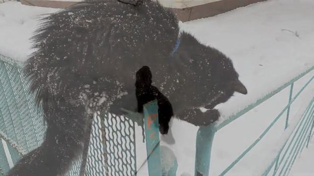 Котики на улице, зима, фото.