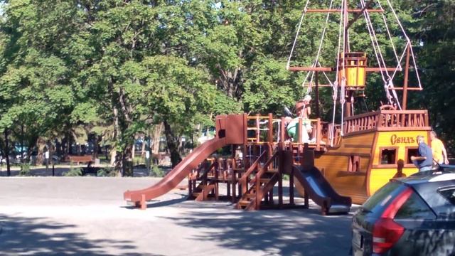 63 последние штрихи перед открытие детской площадки в форме корабля.